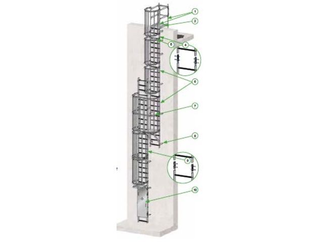 Enfin, cette échelle de dimensions 600 mm de largeur et 3080 mm de hauteur répond parfaitement aux normes EN ISO 14122-4 et NF E85-016, témoignant ainsi de notre engagement qualité. Avec sa fixation adaptable sur tous types de supports et son changement de volée à droite, l'échelle à crinoline VECTALADDER® se positionne comme la solution de référence pour tous vos travaux en hauteur.