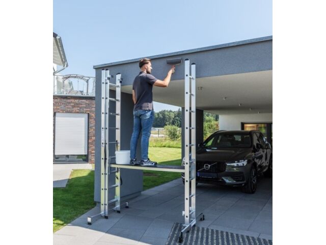 Le pack échelle transformable 3x2,20 m avec plateau de travail constitue une solution complète pour les travaux en hauteur nécessitant stabilité et polyvalence. Cet ensemble associe une échelle transformable à trois plans, un plateau de travail sécurisé et une traverse de stabilisation complémentaire. Il permet de créer rapidement une surface de travail stable tout en conservant les fonctionnalités d’une échelle multi-positions.