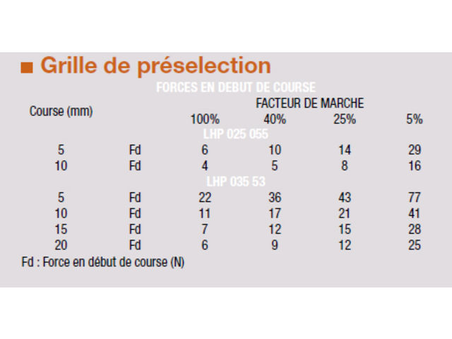 Type : Electro-aimant de manoeuvre simple Haute Energie (Type LHP)Classe d'isolation : FTension standard : 24 V ccForces en début de course : de 6 à 110 NProtection de l'appareil : IP 40 (voire IP 65 N)Dimensions : 2 tailles disponibles - 25 x 25 x 55 mm et 35 x 35 x 53 mmCourses disponibles : 5, 10, 15, 20 mm (selon la taille)Raccordement : fils libres IP 00