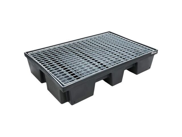 La structure solide de cette palette de rétention peut supporter une charge statique maximale de 1100 kg, garantissant une stabilité sans faille même lors du stockage de fûts pleins et lourds. Les dimensions généreuses de 1250 mm de largeur, 1250 mm de longueur et 475 mm de hauteur hors tout offrent amplement d'espace pour positionner les fûts en toute sécurité. Pour faciliter le nettoyage et la manipulation, la palette est équipée d'un caillebotis en acier galvanisé amovible, conçu pour résister à la corrosion et aux agents chimiques, et qui maintient les fûts surélevés, permettant une inspection facile des fuites et empêchant tout contact direct avec les éventuels déversements.