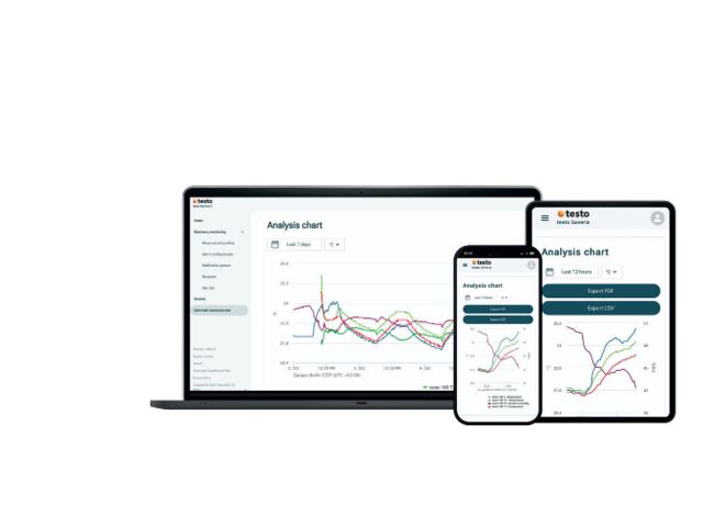 “ - Alarmes par messages Push, e-mail ou SMS (option) en cas de dépassement des limites - Contrôle visuel sur place grâce au grand écran - Transmission des données via WLAN ”