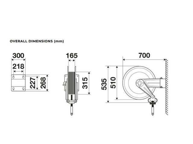 Enrouleur air et eau 20 m Ø G 1 (f) 20 bars Inox 304 avec enroulement automatique et support mural pivotant Raasm RA.8552.102 - TORROS