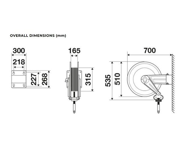 Enrouleur air et eau Ø G 1 (f) 20 bars Inox 304 avec support mural pivotant Raasm RA.8552.100 - Enrouleurs de tuyaux