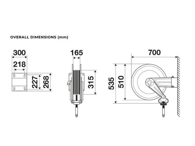 Enrouleur air et eau 15 m Ø G 1 (f) 20 bars Inox 304 avec enroulement automatique et support mural pivotant Raasm RA.8552.101 - Enrouleurs de tuyaux