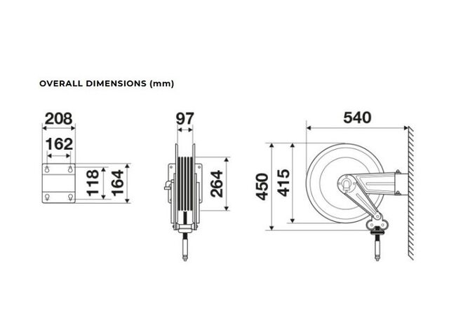 Enrouleur Graisse 15 m ø 3/8 400 bars Acier Peint avec enroulement automatique et support mural pivotant Raasm RA.8420.506 - Enrouleurs de tuyaux