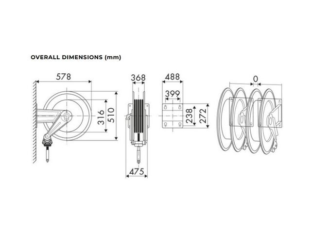 Enrouleur air et eau 20 m Ø G 1 (f) 20 bars Inox 304 avec enroulement automatique et support mural fixe Raasm RA.8562.104 - TORROS