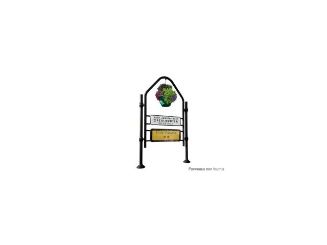 Équipé d#039;un support en acier extrêmement résistant aux conditions climatiques et décoré d#039;une suspension florale, le support fleuri pour panneau de ville allie convivialité et utilité. Idéal pour rehausser l#039;image de votre collectivité, il est muni de pommeaux en inox brossé qui s#039;intègrent naturellement avec l#039;esthétique de vos équipements urbains. Informations détaillées : Hauteur de la structure (hors sol) : 314 cm. Hauteur de la structure (hors tout) : 359 cm. Largeur 172,2 cm. Structure en tube d’acier D. 7,6 cm et 6 cm. Supports de panneau d#039;entrée de ville avec 2 traverses horizontales et 2 tubes verticaux 4 x 4 cm. Jardinière D. 60 cm. Disponible en plusieurs coloris. Pommeau Inox brossé: Vue éclatée : Quelle est la robustesse et l#039;esthétique du support fleuri pour panneau de ville ? Le support fleuri pour panneau de ville est conçu pour offrir une durabilité exceptionnelle et une esthétique agréable, essentielles pour toute collectivité cherchant à améliorer son image publique. Voici quelques caractéristiques qui soulignent sa robustesse et son design attrayant : Résistance aux intempéries : fabriqué avec un acier de haute qualité, résistant aux diverses conditions climatiques. Finitions soignées : peint sur zinc pour une longue tenue des coloris et une protection accrue. Design floral : orné d#039;une suspension florale qui ajoute une touche de convivialité. Ces détails font de ce support un choix optimal non seulement pour sa fonctionnalité mais aussi pour son apport esthétique aux espaces urbains. Comment le support fleuri contribue-t-il à l#039;embellissement de vos équipements urbains ? L#039;intégration du support fleuri pour panneau de ville en tant qu#039; entrée de ville apporte une valeur ajoutée significative à l#039;environnement urbain. Son design et sa fonctionnalité se conjuguent pour harmoniser et embellir les entrées de ville : Intégration esthétique : les pommeaux en inox brossé s#039;accordent parfaitement avec les autres éléments urbains. Visibilité améliorée : hauteur et largeur généreuses pour une meilleure visibilité des informations. Variété de coloris : disponible en plusieurs coloris pour s#039;adapter à l#039;esthétique locale. Idéal pour indiquer l#039;entrée ou la sortie d#039;une ville , ce support valorise chaque espace où il est installé tout en s#039;harmonisant avec les équipements existants. Pourquoi choisir ce support pour votre projet d#039;aménagement urbain ? Opter pour notre support pour panneau de ville représente un choix stratégique pour tout projet d#039; aménagement urbain , combinant esthétique et fonctionnalité. Voici pourquoi il devrait être au cœur de vos installations : Durabilité garantie : construit pour résister à long terme, réduisant les besoins en maintenance. Adaptabilité : convient à toutes sortes de panneaux, qu#039;ils soient informatifs ou décoratifs. Facilité d#039;installation : conçu pour une mise en place rapide et sécurisée. Ce support n#039;est pas seulement un élément fonctionnel, mais aussi un vecteur d#039;amélioration de l#039;image de la ville. Quels bénéfices un support pour panneau d#039; entrée de ville apporte-t-il ? L#039;installation d#039;un support pour panneau à l#039; entrée de ville offre de nombreux avantages, en termes d#039;esthétique et de fonctionnalité. Investir dans ce support est un choix judicieux pour tout aménagement urbain : Première impression positive : renforce l#039;image accueillante de la ville. Cohérence esthétique : s#039;intègre parfaitement avec les équipements urbains existants. Choix durable : construit pour endurer, minimisant les interventions de maintenance. En somme, ce support est une solution excellente pour valoriser l#039; entrée de ville et accueillir résidents et visiteurs dans un cadre harmonieux et fonctionnel.