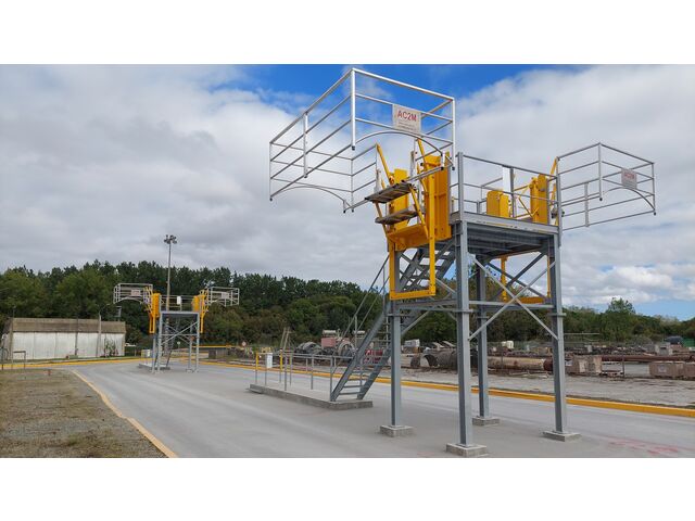“ -> Mise en sécurité de l'opérateur sur la citerne ou le conteneur. -> Structure fixe ou structure mobile selon le besoin du client. -> Passerelle abattante et échelle mobile certifiées TÜV SÜD Product Service GmbH. ”