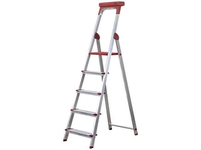 Escabeau économique et repliable, fabriqué en aluminium. Il possède un garde corps de sécurité pour éviter toutes chutes de l'utilisateur. En haut de ce garde-corps, il y a un porte-outils très pratique car il peut se fermer. Les dimensions du porte-outils sont de Lxpxh : 350 x 135 x 55 mm. En se fermant, il permet d'éviter d'enlever les outils à chaque déplacement et de sécuriser les déplacements. De plus, les outils ne risquent pas de tomber hors du porte-outils lorsqu'un utilisateur travaille sur l'escabeau. Les marches sont striées et antidérapantes pour plus de stabilité. Les marches possèdent une profondeur de 80 mm pour les escabeaux classiques et de 120 mm pour les escabeaux renforcés, pour une hauteur de 35 mm. La plateforme est fabriquée en plastique, est rainurée pour être antidérapante et possède des dimensions Lxpxh : 295 x 255 x 28 mm. Cet escabeau supporte des charges jusqu'à 150 kg et possède 2 sangles de sécurité en nylon, pour les modèles de 7 et 8 marches. Les patins sont antidérapants pour plus de stabilité au sol de l'escabeau. Repliable, cet escabeau prend peu de place lors de son stockage. La longueur de l'armature est de 20 mm, et sa profondeur de 50 mm. Deux modèles sont disponibles : un escabeau standard, de coloris aluminium / vert, un escabeau avec des charnières renforcées, de coloris aluminium / rouge.Conforme à la norme EN 131.