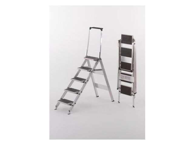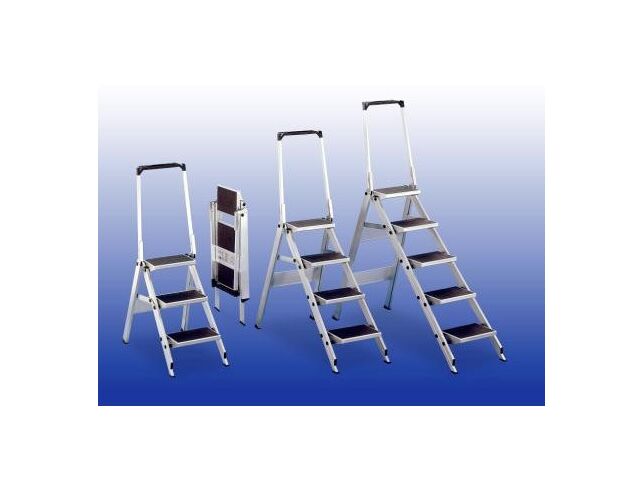 Disponible en plusieurs configurations, l’escabeau est proposé en version 3 marches avec ou sans rampe, tandis que les modèles 4 et 5 marches sont équipés d’une rampe de maintien. En option, un jeu de roulettes autoblocantes peut être ajouté afin de faciliter les déplacements et améliorer la productivité lors d’interventions répétées sur différentes zones de travail