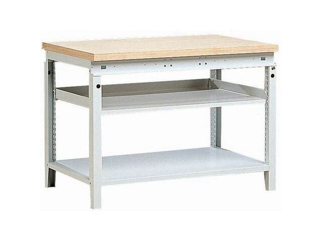 Établi function 115, charge maxi: 500 kg, hauteur hors tout: 850 mm, largeur hors tout: 1150 mm, plateau d'établi matériau: hêtre multiplis, profondeur hors tout: 750 mm, plateau épaisseur: 40 mm, nb de tiroirs: 0, nb de tablettes: 2, nb de portes: 0, nb de caissons: 1, emballage recyclable: oui - 100 %, produit recyclable: oui - 100 %, poids du produit: 52 kg