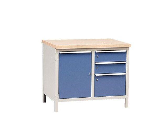 Établi sans plateau modul 100 avec armoire et tiroirs, charge maxi: 500 kg, hauteur hors tout: 810 mm, largeur hors tout: 1000 mm, profondeur hors tout: 665 mm, nb de tiroirs: 3, nb de tablettes: 0, tiroir hauteur: 2 x 150, 1 x 300 mm, nb de portes: 1, nb de caissons: 2, tiroir charge maxi: 60 kg, emballage recyclable: oui - 100 %, produit recyclable: oui - 100 %, poids: 46 kg