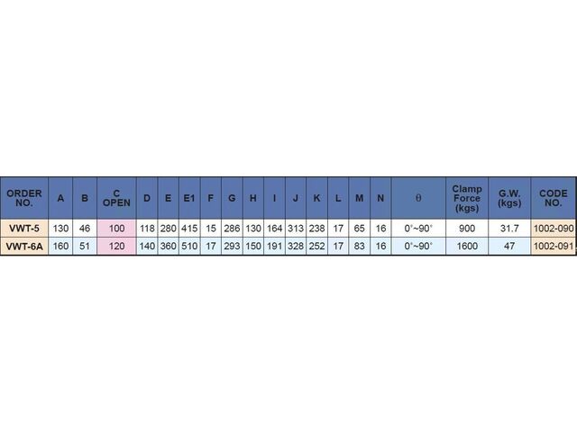 Étau de fraisage mécanique biaxial largeur des mors 130 mm ouverture 100 mm hauteur des mors 46 mm Vertex VWT-5 - Etau d'atelier