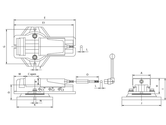 Étau de fraisage avec grande ouverture largeur des mors 132 mm ouverture 245 mm hauteur des mors 48 mm Vertex VJ-500