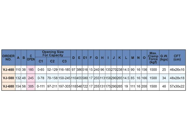 Étau de fraisage avec grande ouverture largeur des mors 154 mm ouverture 305 mm hauteur des mors 54 mm Vertex VJ-600 - Etau d'atelier