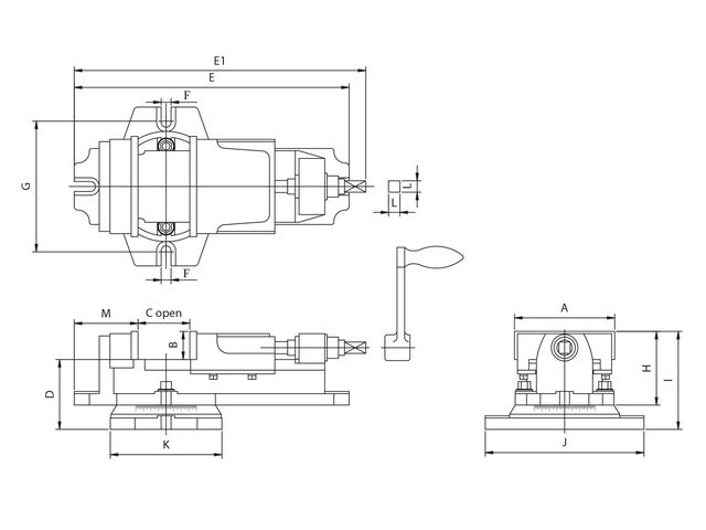 Étau de fraisage robuste avec une largeur des mors de 204 mm, une ouverture maximale de 146 mm et une hauteur des mors de 63 mm.