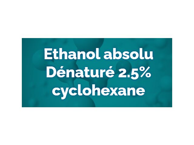 4. L'éthanol absolu dénaturé 2.5% cyclohexane est accompagné d'informations complètes sur ses caractéristiques, telles que les numéros CAS 64-17-5 / 110-82-7 et EINECS 200-578-6 / 203-806-2, offrant ainsi une traçabilité précise et une conformité réglementaire assurée pour les utilisateurs industriels.