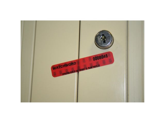 L'étiquette anti-fraude WATCHWORD est votre solution pour garantir la sécurité et l'intégrité de vos biens. Fabriquée à partir de film polyester robuste avec adhésif pré-marqué, cette étiquette détériore considérablement les tentatives de fraude et assure une double protection pour vos portes, équipements informatiques, caisses, kits médicaux et documents.