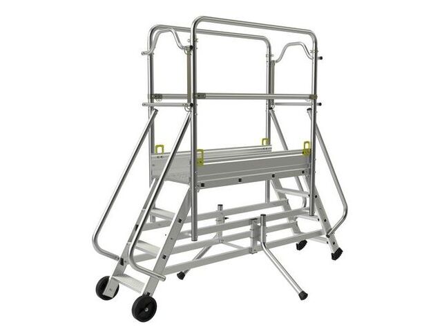 Pesant 29 kg, cet escabeau roulant est équipé de roulettes robustes (Ø 50 mm) facilitant son déplacement sur chantier ou dans votre atelier. Son encombrement au sol réduit (0,54 m de largeur et 0,88 m de longueur) permet un rangement aisé. La hauteur hors tout de 2,01 mètres en fait un outil polyvalent pour de nombreuses applications professionnelles.