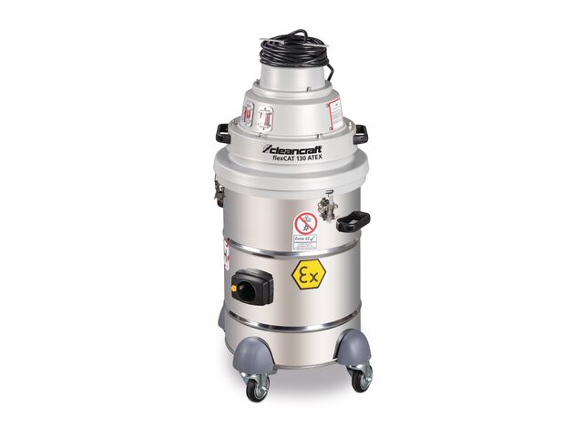 Aspirateur industriel pour zone ATEX 22 - cuve en acier inoxydable de 38 litres - 1 moteur 1,2 kW 230 V - 72 dB(A) Cleancraft FLEXCAT 130 ATEX - produit présenté par TORROS