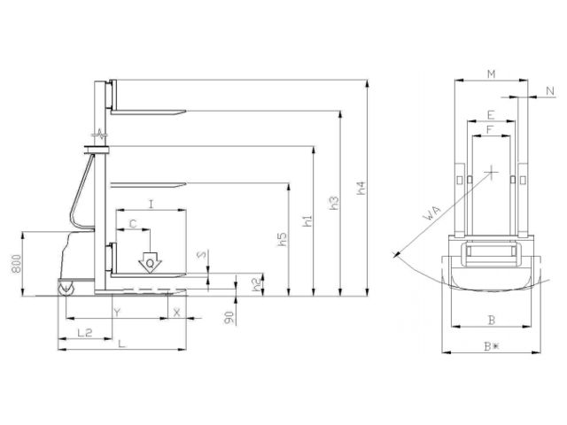 Gerbeurs XAS/XA 12V evo à fourches 800 mm réglables