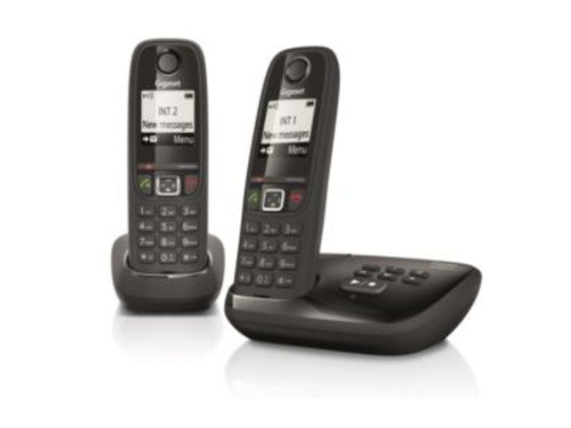 Pack Duo Gigaset AS405AVersion Duo: un gigaset AS405A et un combiné supplémentaire !Le Gigaset AS405 est équipé d'un haut-parleur d'une grande qualité sonore HSP (High Sound Performance). Vous pouvez mettre votre interlocuteur sur haut-parleur pour téléphoner les mains libres ou faire partager la conversation autour de vous.La batterie longue durée vous garantit une autonomie sans fil de 18 heures en conversation et 200 heures en veille. Le téléphone AS405 de Gigaset dispose également d'un grand répertoire de 100 noms et numéros. Grâce à la technologie Dect-Gap le gigaset AS405A a une portée jusqu'à environ 50m en intérieur et 300m en extérieur. Existe aussi en sans répondeur : Gigaset AS405 Duo.Caractéristiques du téléphone Gigaset AS405 :Ecran rétroéclairé blanc 1.8°, 4 lignesAffichage grands caractèresRépondeur intégré avec une capacité de 20 min d'enregistrementMenu ergonomique basé sur l’utilisation d’icônesRépertoire de 100 noms et numérosPrésentation du nom et du numéroMains libres : haut-parleur haute qualité sonore - son HSPLongue autonomie : 18h en communication et 200h en veilleAffichage de l'heure, de la date, du niveau de batterie, de la durée de la communicationClavier rétro-éclairéTouche secret : permet de couper le micro afin de ne pas être entendu par votre interlocuteur. Fonction Bis (10 derniers numéros composés)Journal des 25 derniers appels reçus10 sonneries au choixRéglage du volume sur 5 niveauxFonction réveilMontage mural possiblePlug & Play : installation facileEvolutif jusqu'à 4 combinés par baseTechnologie Eco-DECTDimensions combiné : 155 x 49 x 34 mmDimensions de la base : 44 x 129 x 103 mmPoids combiné : 110 gBatterie : 2 x AAA NiMHCouleur : noirFonctions disponibles avec plus d’un combiné :Tous les combinés supplémentaires Gigaset sont compatibles sur la base AS405.2 appels simultanés (1ext / 1 int)Conférence à 3 (1ext / 2 int)Transfert d’appels aux autres combinésInterphonie gratuiteCopie de répertoire entre combinésSonnerie collective lors d'appels entrants Son HSP :High Sound Performance vous offre une qualité de son exceptionnelle. Vos conversations n'ont jamais été aussi claires.Technologie ECO DECT : économie d'énergie et puissance d'emission réguléeVous économisez l'energie et protégez l'environnement tout en conservant une qualité sonore optimale. Equipé d'une alimentation basse consommation, le Siemens Gigaset AS405 consomme jusqu'à 60% d'énergie en moins par rapport aux téléphones DECT classiques – vous économisez et participez à la sauvegarde de l'environnement. Votre combiné ajuste et optimise en permanence la puissance transmise par le combiné selon sa distance par rapport à la base. Le mode sans emission ECO Plus réduit la puissance de transmission de 100 % lorsque le combiné est en veille. Compatible avec toutes les Box ADSL (sauf spécificités techniques de votre boîtier Adsl)