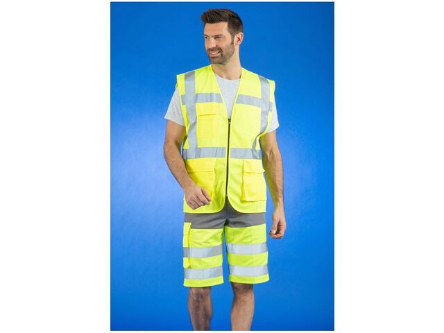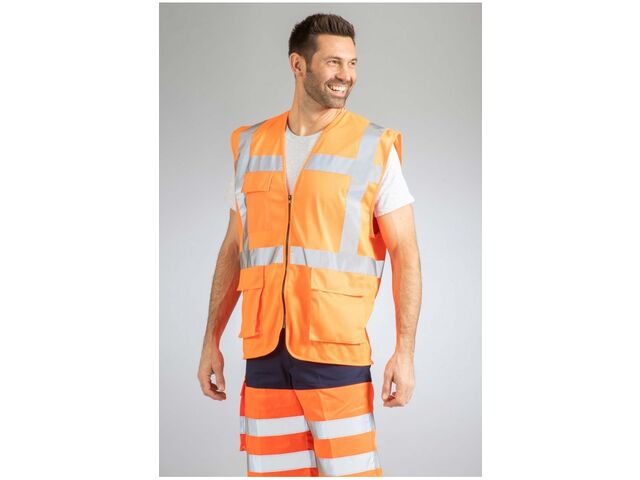 Conçu pour les professionnels exposés aux risques en extérieur, ce gilet multipoches haute visibilité est à la fois