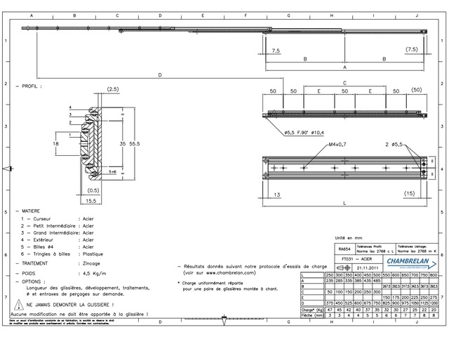 La glissière super extension Acier RA654, conçue par CHAMBRELAN GLISSIERES A BILLES & RAILS DE GUIDAGE INDUSTRIELS, est une solution industrielle robuste, intemporelle et modulable. Faite d’acier zingué, elle offre une résistance extraordinaire, facilitant ainsi l’accès aux zones exiguës tout en offrant un fonctionnement doux et silencieux.