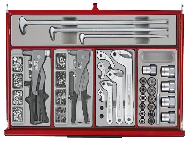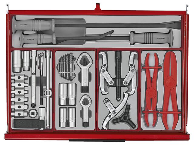 De l'outillage isolé pour des travaux électriques en toute sécurité aux clés mixtes à cliquet qui augmentent votre rapidité et votre efficacité : cet ensemble est votre partenaire indispensable. De plus, le chaos appartient définitivement au passé. Grâce au système modulaire unique de Teng Tools, chaque pièce a sa propre place fixe.