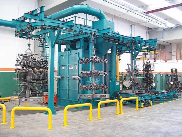 1. Performance et cadence accrues: La grenailleuse SANDERMATIC est particulièrement prisée pour sa productivité sans pareil grâce à l'implémentation de son système de convoyeur aérien. Ce dernier, avec sa fonction de chargement et déchargement simultanés, permet un traitement ininterrompu des pièces, ce qui amplifie considérablement la capacité de production.