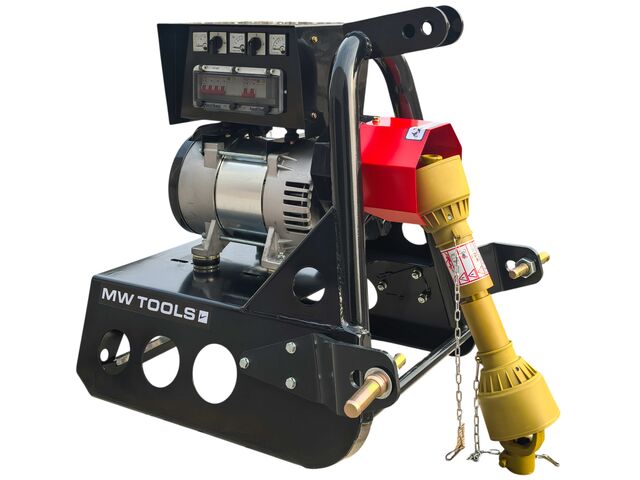 Groupe électrogène agricole 12 kW (15 kVA) pour tracteur dès 30 ch - 230 V et 400 V - Régulateur AVR - Cardan et attelage trois points MW Tools PTG120 - produit présenté par TORROS