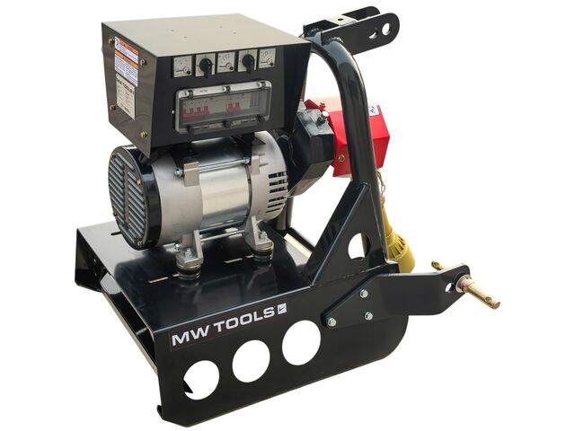 Groupe électrogène agricole 12 kW (15 kVA) pour tracteur dès 30 ch - 230 V et 400 V - Régulateur AVR - Cardan et attelage trois points MW Tools PTG120 - Groupes électrogènes électriques