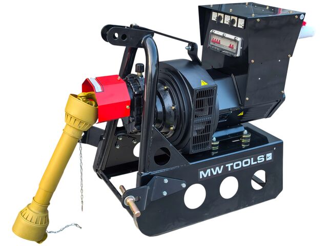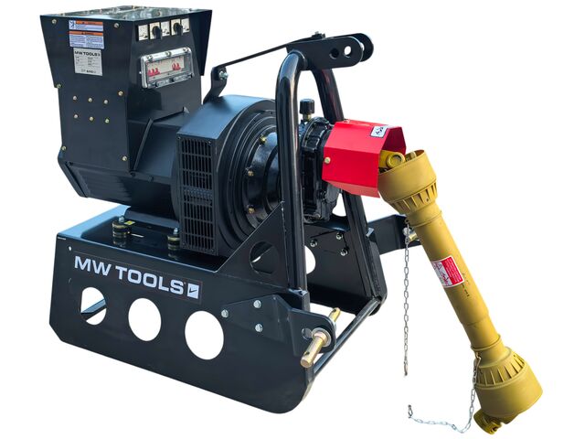 Groupe électrogène agricole 30 kW (37,5 kVA) pour tracteur dès 30 ch - 230 V et 400 V - Régulateur AVR - Cardan et attelage trois points MW Tools PTG300 - Groupes électrogènes électriques
