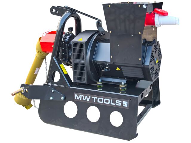 Groupe électrogène agricole 30 kW (37,5 kVA) pour tracteur dès 30 ch - 230 V et 400 V - Régulateur AVR - Cardan et attelage trois points MW Tools PTG300 - produit présenté par TORROS