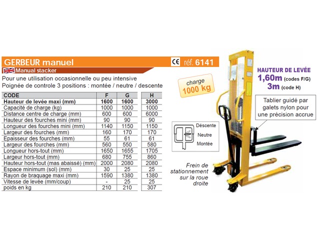 3. Système de levage rapide : Équipée d'une pompe double effet, elle permet de soulever des charges rapidement et efficacement, augmentant votre productivité.