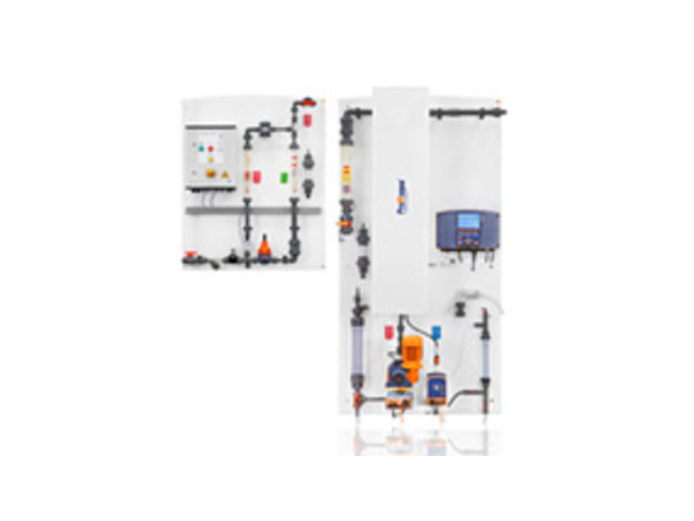 Installation au dioxyde de chlore pour la production, le dosage et la surveillance en continu de dioxyde de chlore avec des produits chimiques concentrés. Bello Zon® CDKc est une installation prête à raccorder avec station de dilution préalable intégrée à sécurité intrinsèque.