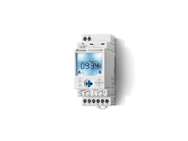 Cet interrupteur horaire numérique Finder série 12 est conçu pour piloter automatiquement des équipements électriques selon des plages horaires programmées. Doté de deux canaux indépendants, il permet de gérer simultanément plusieurs circuits, optimisant ainsi l’exploitation des installations industrielles et tertiaires.