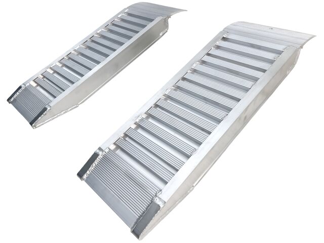 Rampes courtes de 1,26 m pour entrer dans des conteneurs, franchir des seuils, marches, etc. Conviennent pour les machines de jardin, engins de chantier, grues, tracteurs, dumpers, chariots élévateurs, quads, etc.