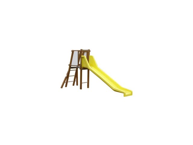 Jeux pour collectivités éco-conçu en éco-composite (mélange de fibres de bois et de polymères avancés qui proviennent du recyclage). Informations détaillées Fabrication en éco-composite (mélange de fibres de bois et de polymères avancés qui proviennent du recyclage), panneau de coffrage polyéthylène, acier peint à la poudre et acier inoxydable. Tour de 75 x 75 cm, échelle et un toboggan hauteur 90 cm. Tranche d#039;âge : 1 à 6 ans Hauteur de chute libre (HCL) : 90 cm. D#039;après la norme EN 1176 ce jeu exige un sol qui amortit les impacts (en accessoires). Surface d#039;implantation : 560 x 375 cm. Surface d#039;impact : prévoir au minimum 17.20 m² de dalles amortissantes d#039;épaisseur 3 cm Préconisations sur la pose d#039;un sol amortissant Quelle est la hauteur de chute (HIC ou HCL) des jeux ? Elle correspond à la hauteur estimée à laquelle un revêtement de sécurité pourra absorber un impact, tel la chute d’un enfant, sans que celui-ci subisse des lésions graves. L#039;épaisseur de la dalle amortissante doit être sélectionnée en fonction de la hauteur de chute libre (HCL) de l#039;équipement commandé ou en place. Des dalles amortissantes de 50 x 50 cm ou des dalles amortissantes de 100 x 100 cm sont disponibles. Tableau des HCC et HCL de nos dalles amortissantes Epaisseur des dalles Dimensions des dalles Hauteur Critique de Chute (HCC) Hauteur de Chute Libre (HCL) 2 mm 100 x 100 cm 60 cm 3 cm 50 x 50 cm 90 cm 3 cm 100 x 100 cm 90 cm 4.3 cm 50 x 50 cm 150 cm 4.3 cm 100 x 100 cm 140 cm 5 cm 50 x 50 cm 160 cm 6 cm 50 x 50 cm 180 cm 8 cm 50 x 50 cm 210 cm 10 cm 50 x 50 cm 240 cm Anticiper sur l#039;usure normale des dalles amortissantes en préférant une épaisseur supérieure : il existe une tolérance de l#039;ordre de ± 10 % sur la mesure de la hauteur de chute critique lors de tout essai.