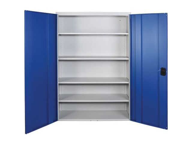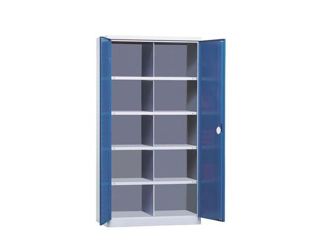L'esthétique de cette armoire est également pensée pour s'intégrer harmonieusement dans votre environnement de travail. Les portes se présentent dans un bleu dynamique (RAL 5023), tandis que la structure est d'un gris discret et professionnel (RAL 7035), créant un contraste visuel agréable et résistant aux salissures courantes d'un atelier. La finition bicolore renforce son aspect moderne et fonctionnel.