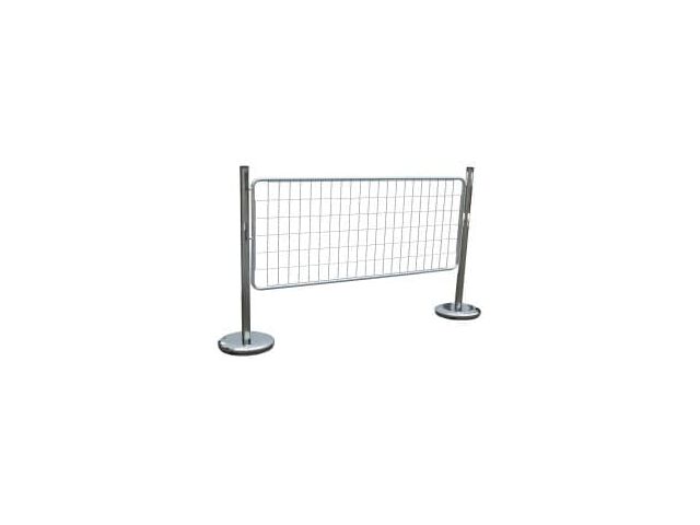 Ensemble composé de 2 poteaux de délimitation en acier noir ou chromé et grille correspondantes en inox 316L (poteaux chromé) ou noir (poteaux noir). Idéal pour les hôtels, salons, congrès, salles de réception, etc. Emplacement porte affiche sur le dessus des poteaux. Extension disponible en accessoire. Informations détaillées Longueur grille (cm) : 150 Hauteur grille (cm) : 65 Epaisseur grilles (cm) : 2.2 Diamètre poteau (cm) : 5 Diamètre base poteau (cm) : 33 Hauteur poteau (cm) : 100