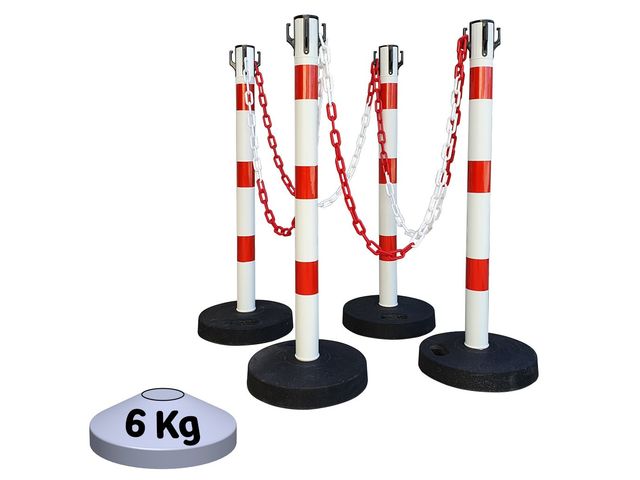 1. L'installation du Kit 4 Poteaux EVOLYS est simple et rapide, facilitant la mise en place d'un balisage temporaire efficace. Vous n'aurez besoin que de quelques minutes pour délimiter une zone spécifique avec la chaîne en polyéthylène.