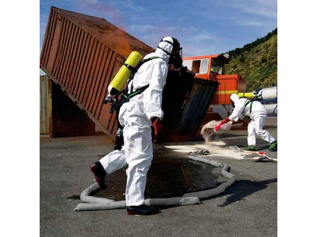 Sac de transport : 45 litresBâche PVC : 90 x 90 cm (900g/m²)Feuilles absorbantes double épaisseur : 40 x 50 cm, tous liquides (huile, eaux, produits chimiques)Boudins absorbants tous liquides : diamètre 8 cm, longueur 120 cmSignaux d'avertissement : 2 triangles de sécurité autoporteursGilet de signalisation : jaune fluo, norme européenneLampe torche waterproof : piles fourniesMasque d'évacuation d'urgence : avec filtres à cartouche combiné gaz/poussière