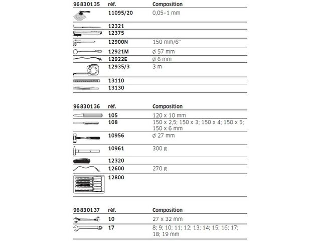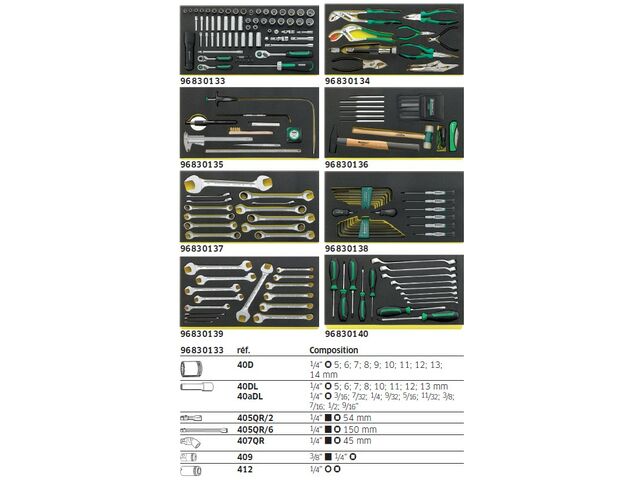 Nombre d'outils : 163Poids : 29 kgDimensions : 405 mm x 520 mm x 600 mmMarque : STAHLWILLENuméro de référence : 13221 WT/TSCatégorie : Aéronautique & MROOrganisation : Plateaux TTS (Tool Control System)Mobilité : Coffre à outils à roulettes robuste