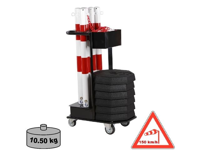 Le Kit Chariot + 6 Poteaux Métal + 25M de Chaîne 6mm d'EQUIPEMENTECH est conçu pour un balisage rapide et efficace, idéal pour sécuriser des zones spécifiques. Il inclut un chariot de transport pratique avec rangement pour la chaîne et les poteaux. Ce kit, robuste et durable, est parfaitement adapté aux conditions extérieures, même en cas de vents forts.
