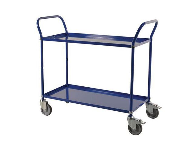 Optimisez votre logistique avec le Chariot 2 plateaux Kongamek 250 Kg, conçu pour une manipulation aisée et une capacité de charge robuste. Ce chariot industriel robuste, doté de deux plateaux spacieux en acier bleu, est idéal pour les environnements professionnels tels que les entrepôts, les ateliers, les usines ou les centres de distribution. Sa conception intelligente facilite le transport de charges lourdes, jusqu'à 250 kg au total, répartis équitablement sur les deux niveaux (125 kg par plateau). Le plateau supérieur offre une surface utile de 940 mm de longueur par 440 mm de largeur, tandis que le plateau inférieur, avec une garde au sol de 230 mm, est facilement accessible. La hauteur entre les deux plateaux de 530 mm permet d'organiser efficacement vos marchandises.
