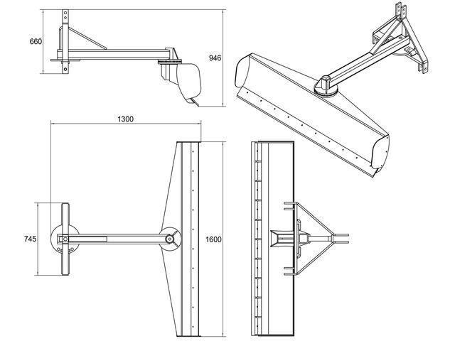 Lame de nivelage 160 cm avec plaque orientable à 360°, conçue pour une utilisation sur tracteurs agricoles et compacts.