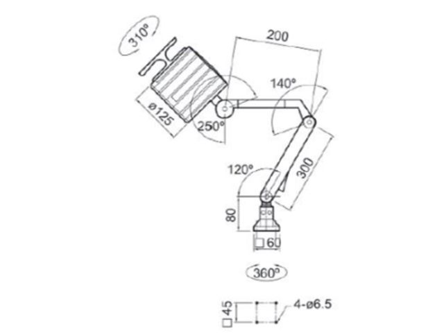 3. Conception robuste et adaptable : Dotée d'un cadre en aluminium résistant et d'un indice de protection IP65, cette lampe est prête à affronter les conditions mécaniques les plus rudes. Son système de réglage des bras et de rotation tête/base augmente sa flexibilité d'utilisation.