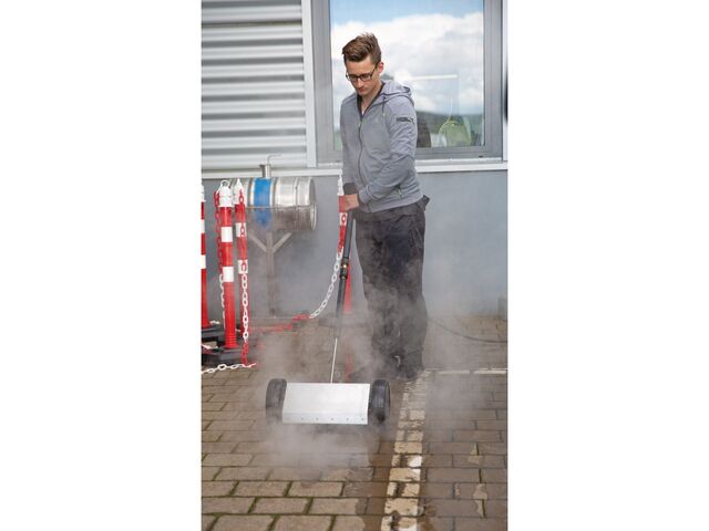 Faites passer votre HDR-H 108-20 au niveau supérieur avec cette unité de désherbage professionnelle sur roues. Conçue pour traiter de grandes surfaces, cette lance utilise de l'eau chaude jusqu'à 100 °C pour détruire la structure cellulaire des mauvaises herbes jusqu'à la racine. Sa hotte robuste en acier inoxydable (inox) concentre la chaleur directement vers le sol, garantissant une efficacité maximale tout en protégeant l'environnement.
