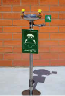 “ Lave-yeux sur pied tout inox, commande manuelle. ”